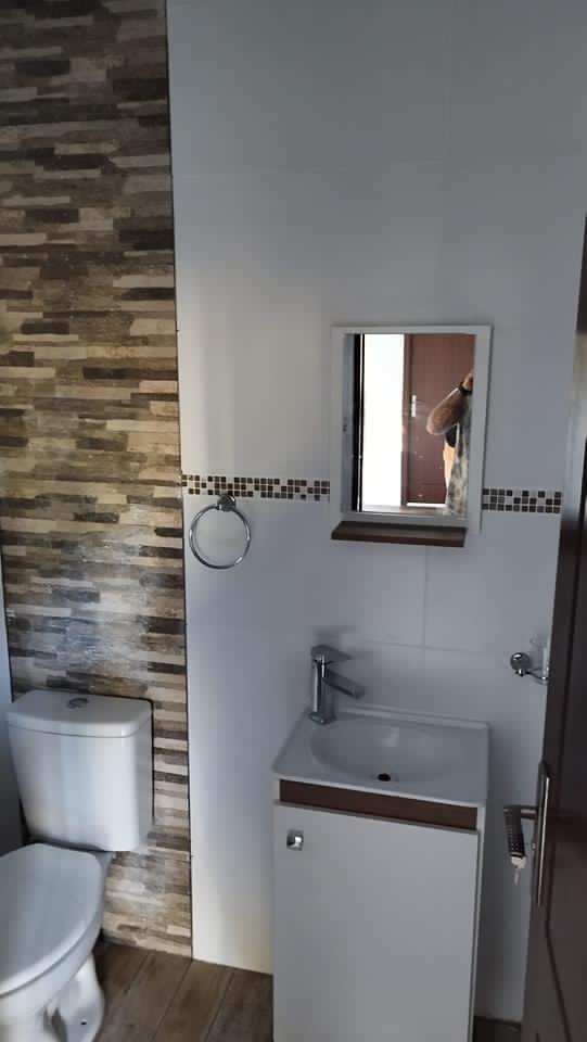 -Banheiro completo revestido em cerâmica.