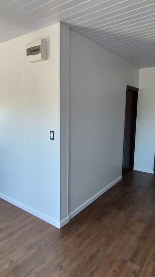 ✅ Revestimiento exterior moderno de chapa ondulada y acabados interiores de melamina y PVC.