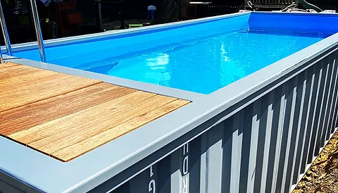 Piscina em contentor de 20 pés Acima do solo, semi-enterrada e enterrada, funcional e rápida de instalar sem autorização Não é necessária uma licença de construção para todas as nossas piscinas acima do solo, a piscina em contentor é acessível a todos!